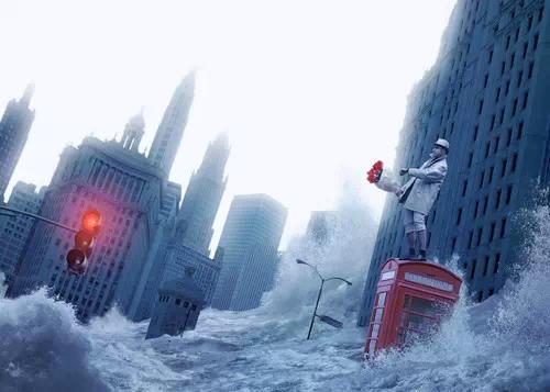 為什么這樣說?因為比起水平的地平線,略帶傾斜的地平線會更加具有動感,比如下面這張海報圖(不是真實(shí)拍出來的,只是拿來做個例子),它沒有一個明確的水平線,但是根據(jù)建筑物來參考,很明顯它是傾斜的,感覺人物站不穩(wěn)隨時都要倒下去,這樣就營造了一種緊張的氛圍,有助于表達(dá)情緒。