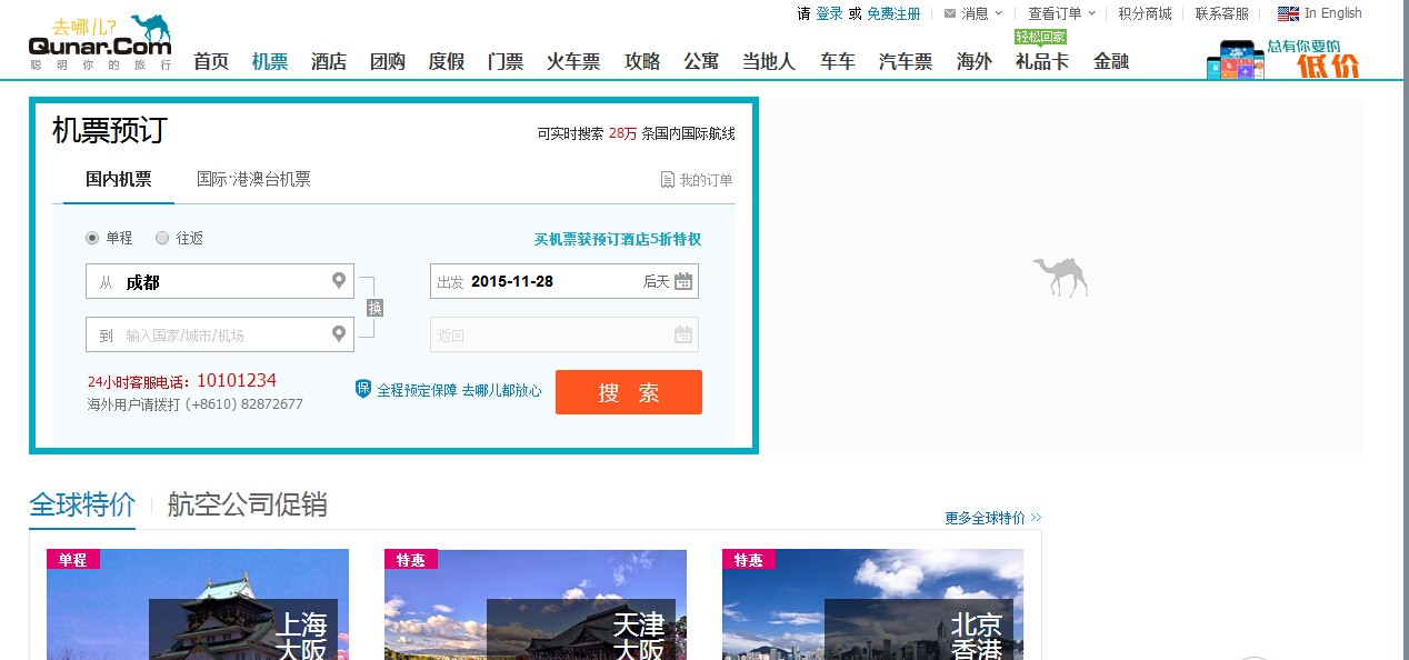 2005年2月去哪兒網(wǎng)創(chuàng)立,對線上和線下的機(jī)票、酒店、度假和簽證等資源進(jìn)行整合,為用戶提供及時、可靠的旅游產(chǎn)品價格查詢、比價和預(yù)訂服務(wù)。