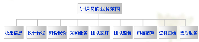 熊曉敏先生把計(jì)調(diào)人員為組團(tuán)類計(jì)調(diào)、接待類計(jì)調(diào)、批發(fā)類計(jì)調(diào)、專項(xiàng)類計(jì)調(diào)四種。組團(tuán)類計(jì)調(diào)又分為中國公民國內(nèi)游計(jì)調(diào)和中國公民出境游計(jì)調(diào)兩種。