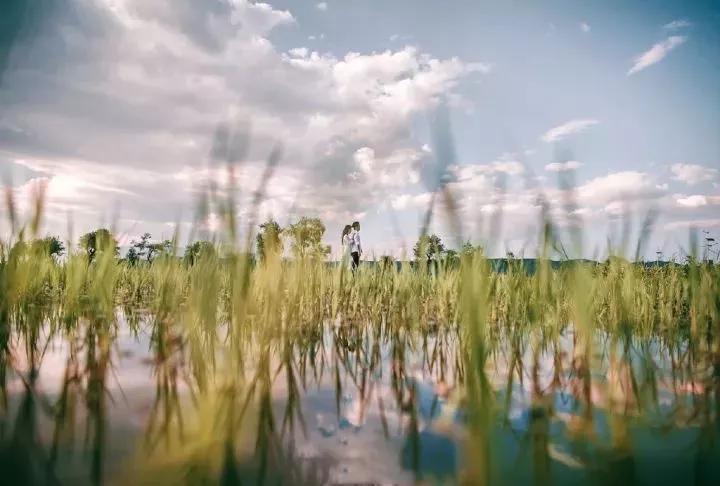 攝影講究的就是創(chuàng)意。之前看到過(guò)一張婚紗攝影照,這位攝影師使用的就是低角度拍攝,將水面作為前景,并讓鏡頭與水面保持一致,保留大場(chǎng)景的同時(shí),卻也很好地突出了主體。