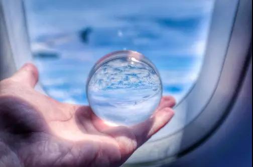 攝影本身就是需要創(chuàng)意。在飛機上除了可以拍攝窗戶外的風景,還可以利用自己的創(chuàng)意制造出更多優(yōu)秀的畫面。比如說,帶個水晶球,