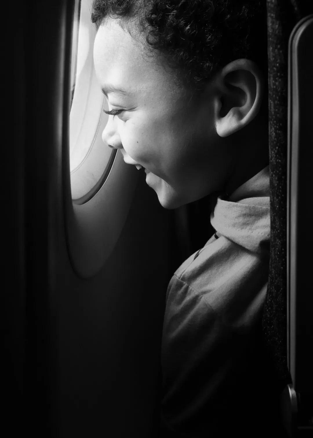 沒必要一直追求著不受阻礙的拍外面的風景,其實你也可以利用飛機的窗戶做前景,制造出框架構(gòu)圖。
