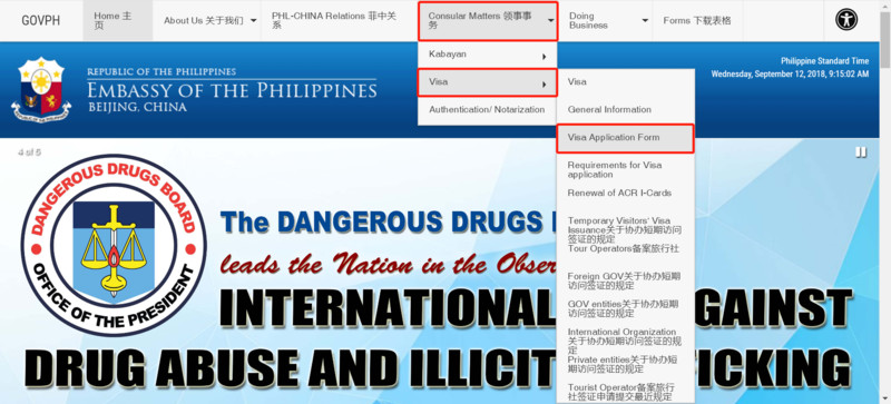 可點(diǎn)擊訪問菲律賓駐華大使館,選擇“領(lǐng)事事務(wù)→Visa→Visa Application Form”下載表格。