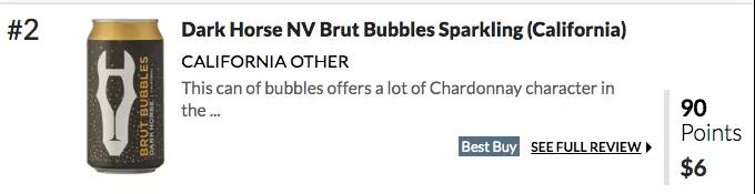 不要以為易拉罐葡萄酒都是不上檔次的廉價貨,前不久,美國《葡萄酒愛好者》雜志發(fā)布了2019年全球10大最具性價比葡萄酒,其中第二名就是加州Dark Horse酒莊出產(chǎn)的一款易拉罐裝起泡酒,《葡萄酒愛好者》給出的評分是90分,在美的售價為6美元。