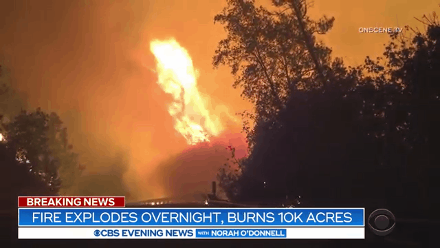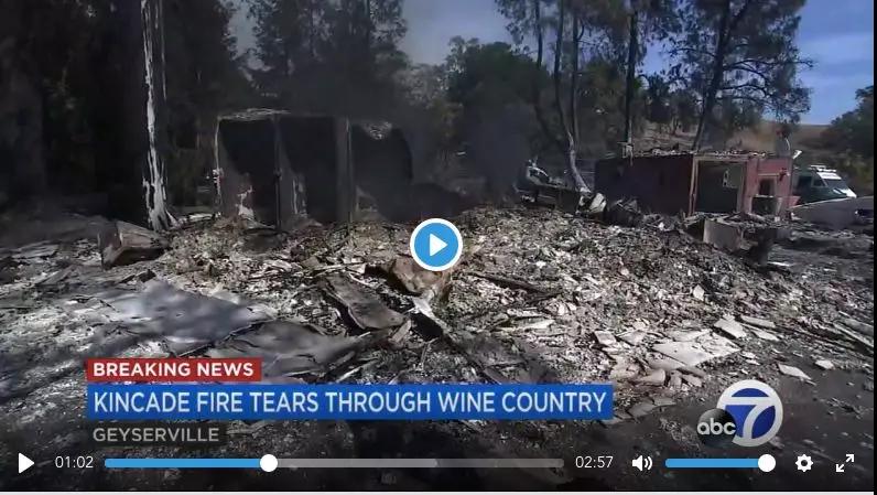 本次山火被稱為:Kincade,于美國當(dāng)?shù)貢r(shí)間10月23日夜晚發(fā)生,火勢猛烈,索多瑪縣北部上千名居民緊急撤離。至24日下午,火勢持續(xù)蔓延,Geyserville縣居民被迫疏散。加州州立大學(xué)、圣貝納迪諾市也因?yàn)橥k姾痛蠡鹪?4日停課。