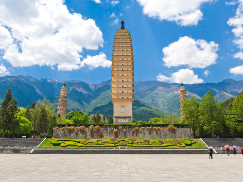 自用早餐后,乘車前往以風、花、雪、月駐著稱的大理,(約180公里,行車約3H)游覽坐落于青山綠水,藍天白云間的[崇圣寺三塔],崇圣寺三塔為國家首批公布的全國文物重點保護單位,是大理的標準和象征,游覽期間,可真正讓你體會到大理“妙香佛國”的悠遠意味(游覽時間90分鐘左右,不含景區(qū)電瓶車,乘坐自理);