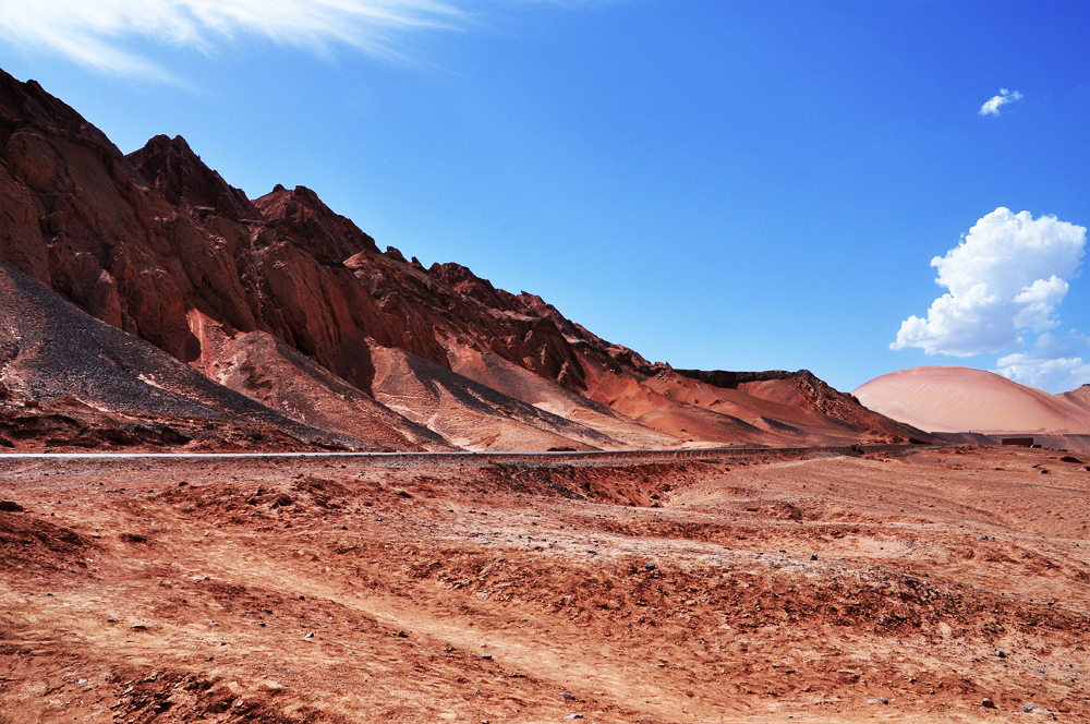 (單程200公里,車(chē)程約3小時(shí))早乘車(chē)前往西游記中聞名遐邇的【火焰山】(游覽約40分鐘)它是全國(guó)最熱的地方,夏季最高氣溫達(dá)47.8度,地表最高溫度在70度以上;