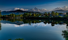 【博卡拉】(另譯博克拉),尼泊爾最為盛名的風(fēng)景地,海拔800多米,市區(qū)人口不足10萬,與熱鬧喧囂的加德滿都比起來要恬靜很多,特別是博卡拉處于喜馬拉雅山谷地,依偎在終年積雪的安娜普爾納山峰和魚尾峰下,傍著迷人的費瓦湖,蒼翠繁茂的植被和壯麗的雪山風(fēng)光形成強烈對比,成為尼泊爾最受歡迎的旅游地點之一;
