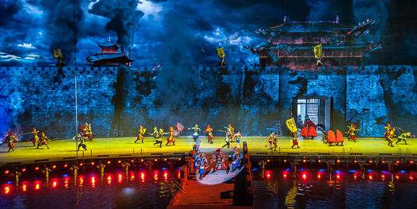 觀賞世界首家頂級環(huán)繞室內(nèi)實景舞臺秀,進(jìn)入三萬平方超大演藝劇場,乘坐會跑的觀眾看臺,打破了五千年來單一的舞臺觀演模式,欣賞真山真水演出;
