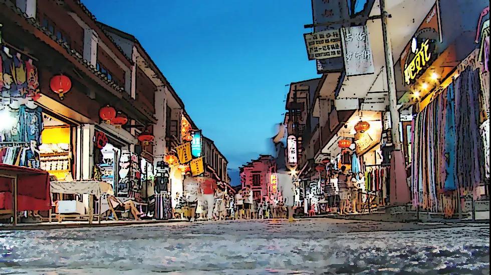 入夜,洋人街—【西街】被迷幻的光影驚醒,1400余年歷史的古街,卻將西方的洋氣浪漫、古時的純樸典雅、現(xiàn)代的文藝新奇融為一體,相得益彰;