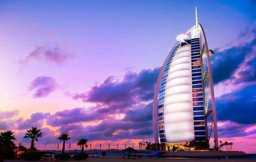 后乘車前往朱美拉公共沙灘,車觀【朱美拉清真寺】,【迪拜酋長皇宮】(外觀),外觀世界最著名的【七星級帆船酒店】,奢華的代名詞;