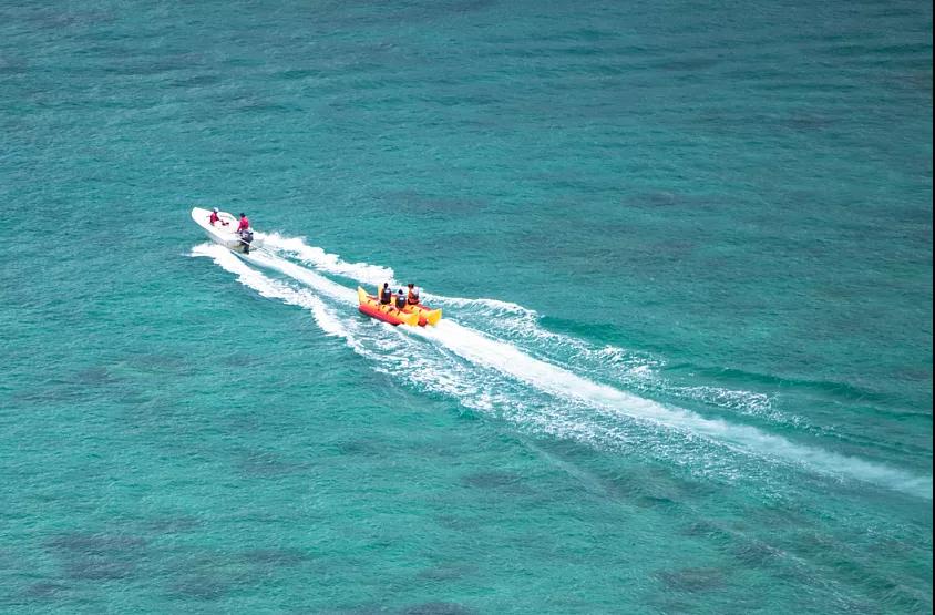 站在沙灘上,浩渺而又純凈的藍(lán)不斷涌來(lái),依深淺的不同呈現(xiàn)出黃、綠、淺藍(lán)、深藍(lán)幾種顏色,仿佛畫(huà)上的風(fēng)景,島上可參加潛水等海上娛樂(lè)項(xiàng)目(海上娛樂(lè)項(xiàng)目費(fèi)用不含)或游泳拍照;