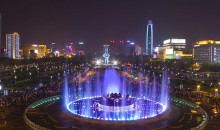 泉城廣場(chǎng),自由游覽。泉城廣場(chǎng)東西約780米,南北寬約230米,面積16.96公頃。設(shè)計(jì)以貫通趵突泉、解放閣的邊線為主軸,以榜棚街和濼文路的延續(xù)為副軸而構(gòu)成框架。各功能分區(qū)圍繞軸線由西向東依次展開(kāi)。廣場(chǎng)主入口處,莊嚴(yán)的國(guó)旗迎風(fēng)飄揚(yáng),國(guó)旗下“泉城廣場(chǎng)”四個(gè)在字銘刻于入口標(biāo)志之上,其背面刻有《泉城廣場(chǎng)記》。