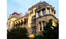 到達(dá)花石樓后自由游覽花石樓及八大關(guān),預(yù)計(jì)游覽1小時(shí)?;ㄊ瘶侵越谢ㄊ瘶?,主要是因?yàn)槠鋬?nèi)部使用“滑石”作為墻壁內(nèi)飾裝飾的,因?yàn)榛捕鹊?,很大一部分墻面保存的不好,被人為刻上了文字。連每個(gè)房間的基本功能都看不出來(lái)。花石樓的外觀保存十分好,洋樓城堡式的設(shè)計(jì)。還有一點(diǎn)就是它的外部建筑材料是花崗巖。