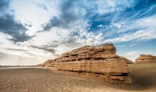 早餐后我們驅(qū)車(chē)穿越一望無(wú)垠的無(wú)人戈壁灘,廣袤的藍(lán)天不染一絲白云,荒涼的戈壁灘上亦少有人煙,眺望遠(yuǎn)方,頓生天地間只你一人的蒼涼豪放之感,見(jiàn)此景你很容易就會(huì)明白諸如王維、王昌齡等古人被千古傳唱的佳作是情從何起。