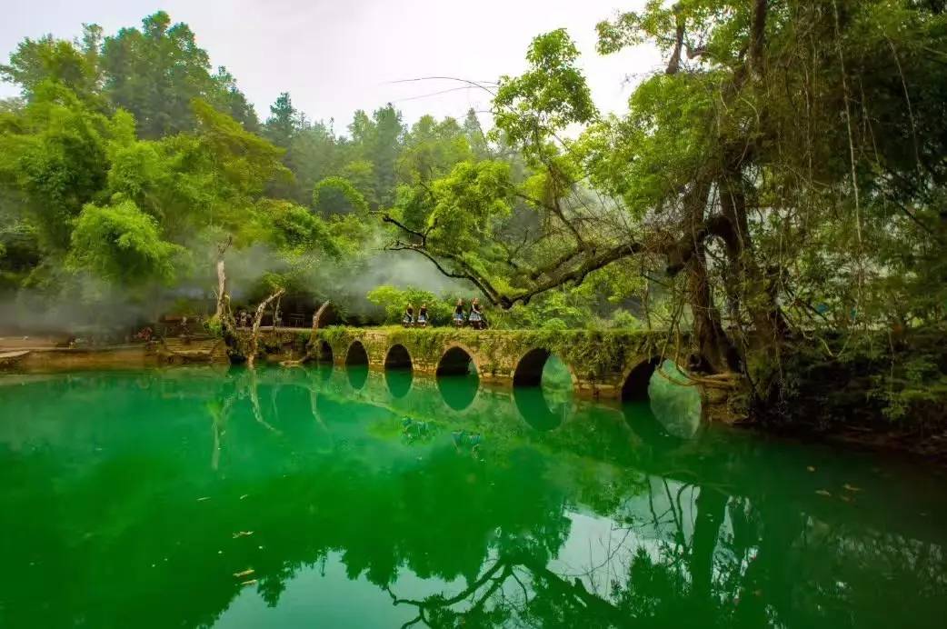 早餐之后乘車前往世界遺產(chǎn)地“地球上的綠寶石”—【小七孔景區(qū)】游覽時間:不少于3小時(需自理電瓶車40元,景區(qū)保險10元,)小七孔景區(qū)因一座建造于道光15年間(1836年)的小七孔石橋而得名。景區(qū)被稱之為“超級盆景”,集山、水、洞、林、湖、瀑布等為一體,在長不到2公里的峽谷內,起迭著68級瀑布,順贄而下,奔瀉而去。拉雅瀑布精巧醉人,水珠飛濺;而長不到600米之水上森林,樹根盤在錯石上,清澈的水流沖刷著青石,行走于其中,若身臨瓊瑤仙池(注:不含鴛鴦湖劃船費30元/人;屬景區(qū)內不必須自費項目)。乍聽名字,就令人神往, 蕩小舟于湖上,心曠神怡, 流連忘返。