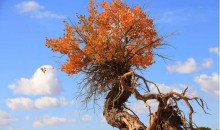 胡楊有“生而一千年不死,死而一千年不倒,倒而一千年不朽”的說法,被世人稱為英雄樹,如果說我們昨日見到的怪樹林是胡楊林死后化作的雕塑,那么我們今日看到的額濟納胡楊林便是正當(dāng)壯年生氣彭發(fā)的藝術(shù)品。千姿百態(tài)的胡楊遍布在沙漠中,大家可以漫步于輝煌的金秋胡楊林,用鏡頭記錄這中國最美的秋景;或者去找尋領(lǐng)隊所說的一樹三葉的神奇景象——“幼樹葉如針似柳眉、壯齡樹葉酷似白樺、老年樹葉橢圓”,胡楊、藍天、來自大漠腹地的風(fēng)聲襲來之時,胡楊林便泛起黃澄澄的層層漣漪,顯盡大西北秋冬那紅盛翠減的獨有風(fēng)情。張藝謀的大片《英雄》中張曼玉與章子怡身著紅衣在這漫天的金色胡楊中打斗,踱步胡楊林,身臨其境,感受大熒屏收錄過的景色之美。