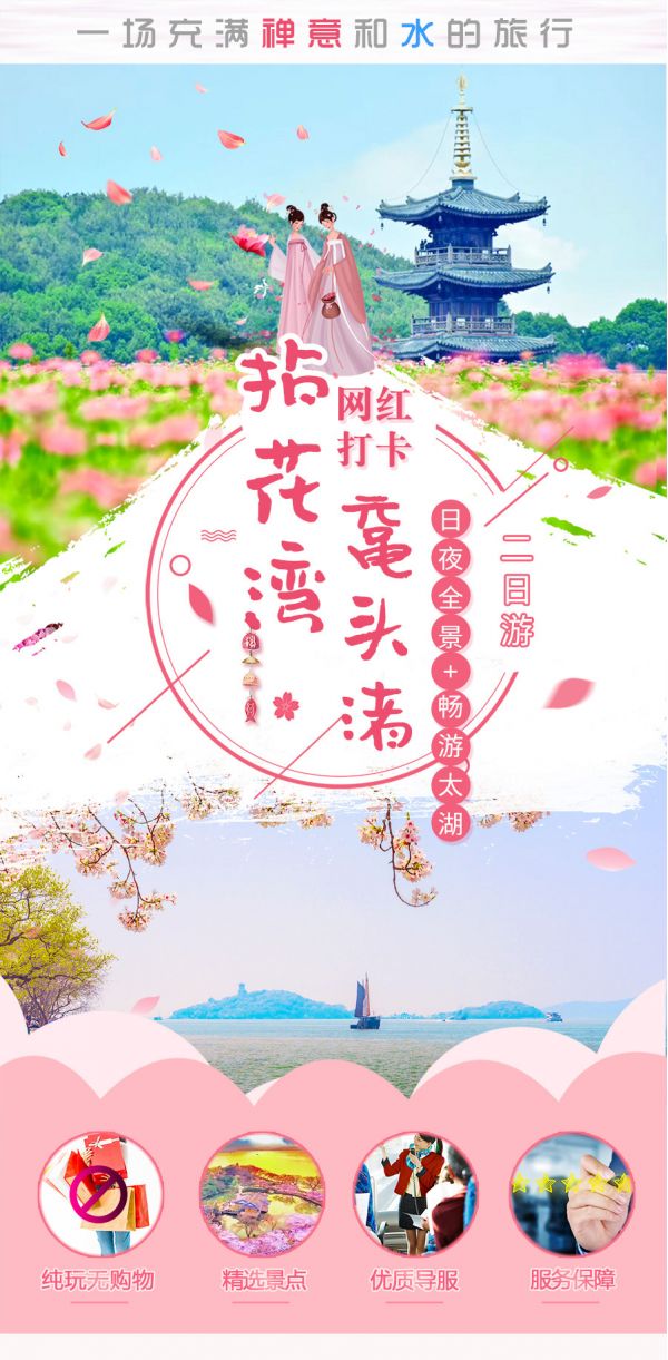 08:00——景點/場館前往:黿頭渚(含首道門票)黿頭渚是太湖北部的一處半島,形似浮黿翹首而得名。在這里你可以游覽龐大的園林群,坐船感受太湖的煙波浩渺,登太湖仙島一探秘境,也可以在春日來此品賞櫻花,體會“太湖佳絕處、畢竟黿頭渚”的意境。每年春季櫻花齊放是這里的一大奇觀,更有熱鬧的櫻花節(jié)。黿頭渚三面環(huán)水,既有山長水闊、帆影點點的自然美景,又有小橋流水的山鄉(xiāng)田園風(fēng)光,是太湖山水景色大美之處。太湖仙島是黿頭渚必游之處,島上有道教仙宮和道、佛兩教石窟塑像。登臨半島上的鹿頂山可環(huán)顧湖濱翠色,天氣晴好時能看到湖面上的翩翩舟影,感受到太湖的浩淼之美。黿頭渚作為賞櫻之地,其獨特之處,一是“水陸空”全景式賞櫻。二是可以在夜晚賞櫻,櫻花與燈光結(jié)合,美不勝收。黿頭渚的早櫻一般于3月上旬開花,多為單瓣或半重瓣。依櫻花的開花時序,將其分為早、晚櫻,早開櫻花的類別多,花期(從初開、盛開到花落)一周時間,晚櫻花期可有7-10天,受升溫速度影響,早晚花期有5-12天的間隔,期間是一些雜交品種櫻花開放。一般3月中下旬的時候染井吉野櫻進入盛花期,也就是最佳觀賞期了。具體哪段時間進入盛花期需要看當(dāng)時的天氣,如果有冷空氣的話,可能就會推遲盛花期。
