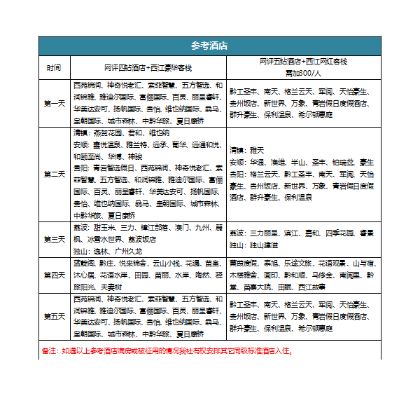 1、不含景區(qū)小交通黃果樹(shù)110元/人,西江30元/人,小七孔50元/人、天眼擺渡車50元/人費(fèi)用需自理。