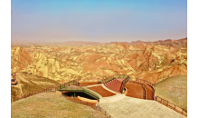 九色丹青觀景平臺九色丹青觀景平臺海拔1748米,平臺的造型宛若一把琵琶橫鋪在丹霞崖壁之間,遠遠望去,渾然天成。這里彩色的千巖萬壑仿佛觸手可及 ,色彩斑斕的丘陵仿似上帝的調色板,富含石青、石綠、朱砂、白堊、黃赭石等三十余種礦物質的巖石在陽光的照射下,各種色彩濃烈地交織在一起,色調或如波浪順著山勢起伏,或從山頂傾瀉而下,山形肌理狀若潑墨山水,美不勝收。