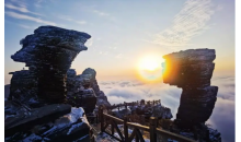 后乘車約3小時(shí)抵達(dá)銅仁國家AAAAA級(jí)風(fēng)景區(qū)【梵凈山】(不含必坐環(huán)保車20元/人+不含必坐住返索道140元/人+保險(xiǎn)10元/人)(游玩時(shí)間:不少于3小時(shí))。是中國第五大佛教名山,彌勒菩薩的道場,也是2018年新晉的世界自然遺產(chǎn)保護(hù)地。567平方千米內(nèi),分布著800余種動(dòng)物,還有2000余種植物,是人類名副其實(shí)的寶藏。 梵凈山腰時(shí)常被云霧繚繞,流云隨風(fēng)翻騰,時(shí)而氣吞山河,時(shí)而嬌媚百態(tài),乘坐索道一路向上,穿破云海,便臨近山頂。向上攀爬少頃,蘑菇石便立于眼前,猶如天上飛來之物,傲然矗立了億萬年。雨后初晴,在與太陽相對(duì)的云霧里會(huì)有佛光顯現(xiàn),若能有幸目睹,便能帶來一整年的好運(yùn)。再向前,紅云金頂拔地而起,如玉筍插天,直指蒼穹。紅云金頂山峰的上半部分,被金刀峽一分為二,分成兩座小山頭,由天橋相連,兩邊各有一個(gè)寺廟,一邊供奉著現(xiàn)在佛釋迦摩尼,一邊供奉著未來佛彌勒,登臨梵天凈土接受兩位佛祖的賜福。