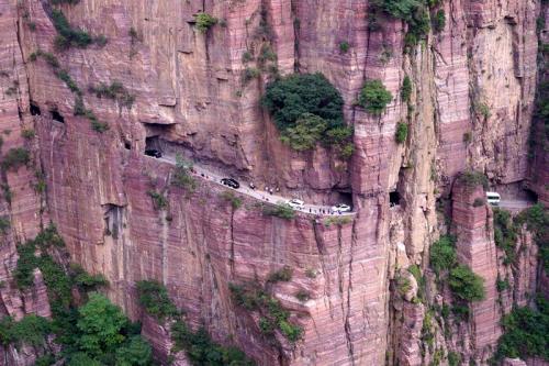 又稱(chēng)郭亮洞掛壁公路,郭亮隧道,郭良隧道,萬(wàn)仙山絕壁長(zhǎng)廊,郭亮村絕壁長(zhǎng)廊,這是一條橫穿絕壁的長(zhǎng)廊通道,1972年農(nóng)歷二月二開(kāi)工,1977年5月1日通車(chē)