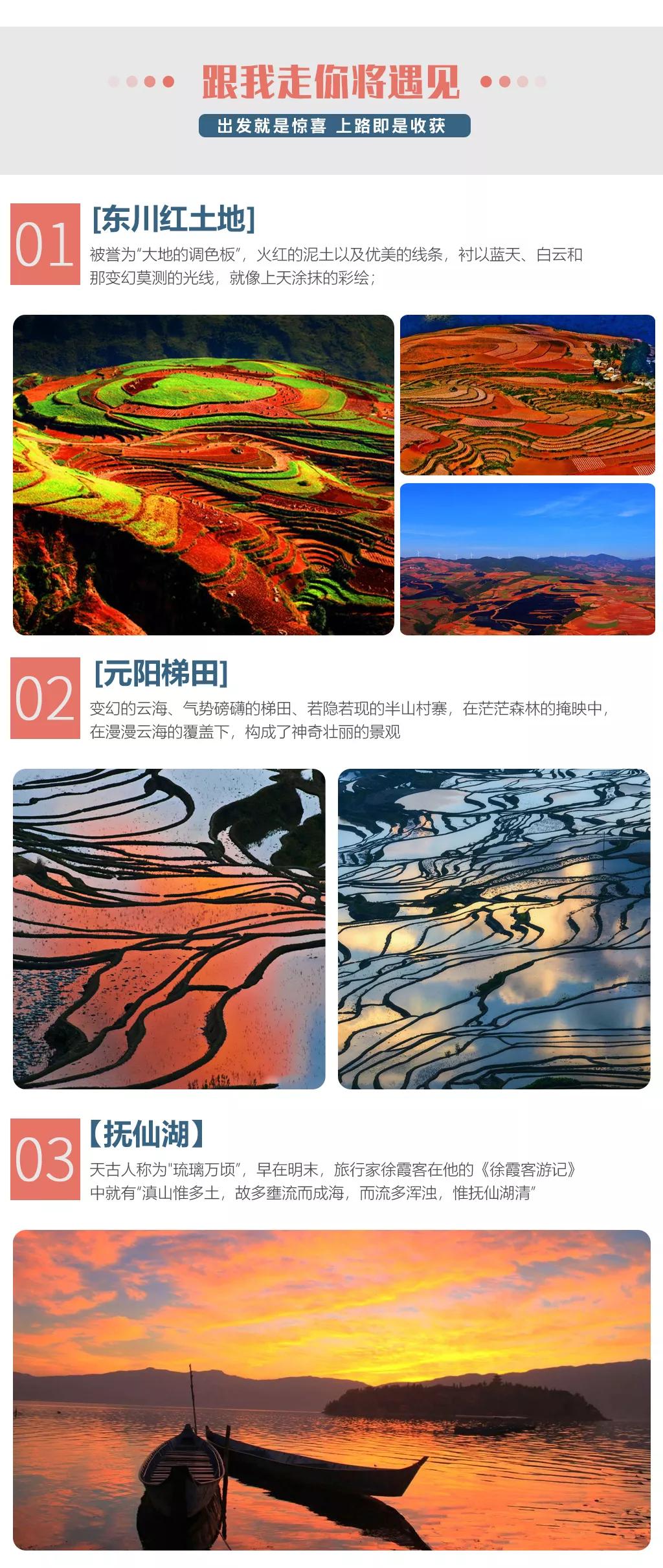 當(dāng)日行程:早晨出發(fā)前往【紅土地打馬坎】觀賞磅礴日出,之后到達【七彩坡】、【紅土大觀錦繡園】進行拍攝;
