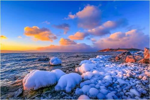 沿湖行走,岸邊的石頭像是羊脂玉一般,有的圓潤,有的光滑,大小不一,隨處可見的冰筍、冰柱形態(tài)各異、錯落有致、晶瑩剔透,賽里木湖冬季冰層厚度可達(dá)將近一米,只要不走到冰面邊緣安全都是沒有問題的,賽里木湖湖水純凈湛藍(lán),清澈的可以看到十多米水下的石頭,走在冰面上,就像走在透明的玻璃板上一樣,是一種難得的奇妙體驗(yàn);