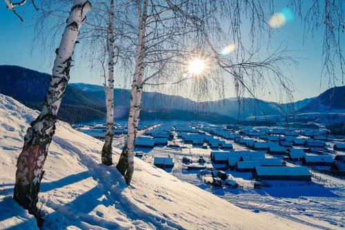 1、登上觀景臺飽覽禾木晨曦,晨光普照在靜謐的禾木,坐馬拉爬犁看禾木日出,民族服飾體驗(yàn)拍照;