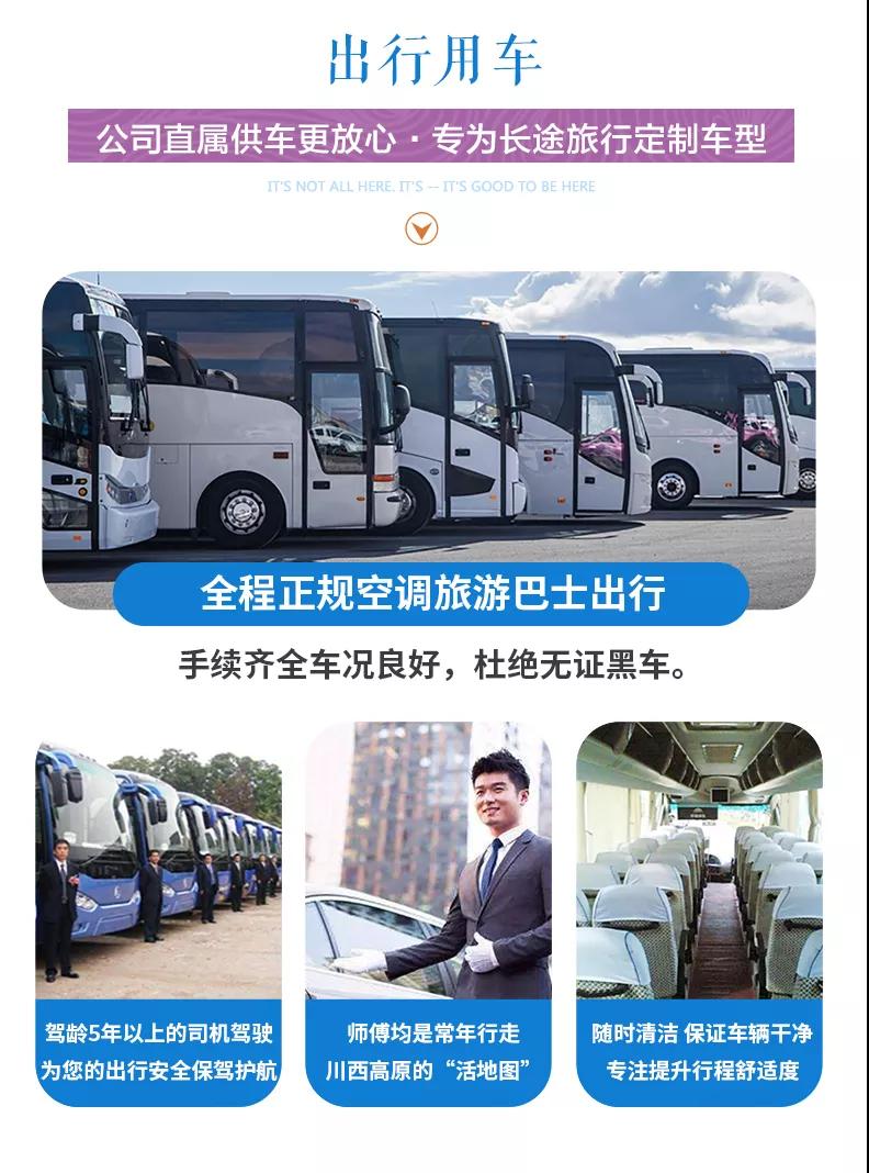 1、關(guān)于車輛交通:目前四川旅游市場(chǎng)8座以下車輛無法辦理旅游牌照,請(qǐng)游客知悉,以此理由提起的投訴我方拒不受理,望您諒解。