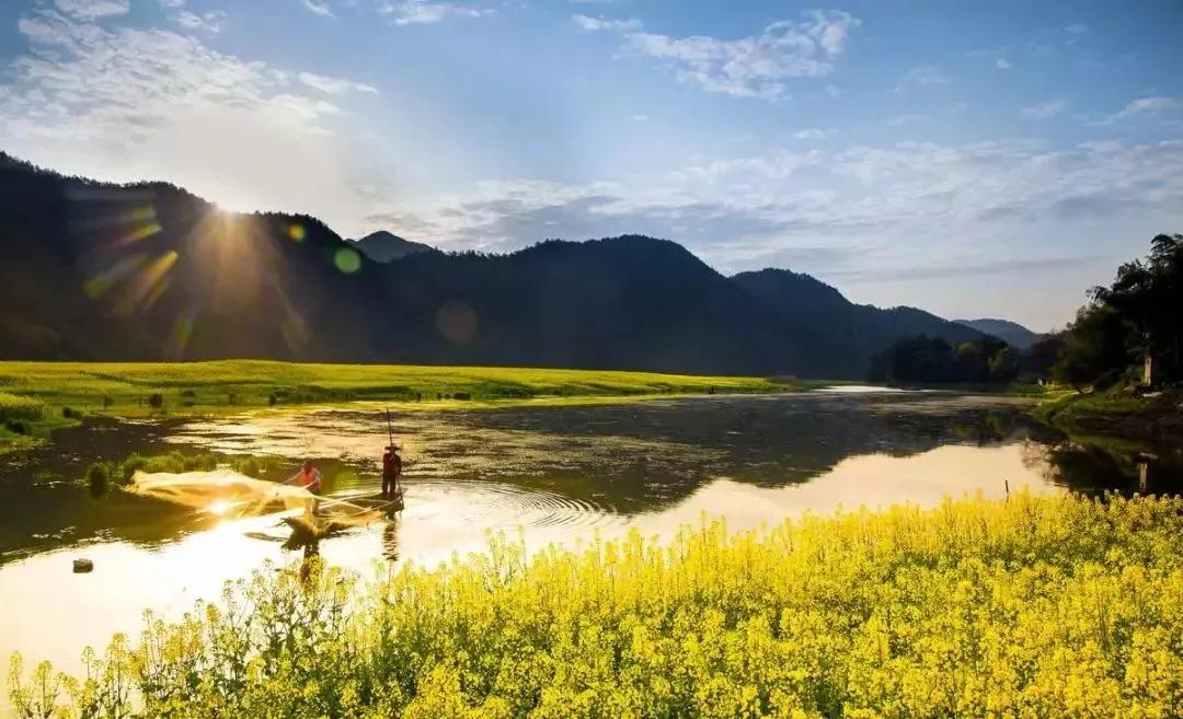 早餐后集合赴新安江山水畫廊【120公里】,三月初春,在這個(gè)繁花似錦的季節(jié),金黃的油菜花鋪滿岸堤,左邊的油菜花規(guī)規(guī)整整地鋪滿田間,新安江流淌而過,藍(lán)天、白云、春江、花海、小舟、民居,如詩如畫;右邊的油菜花一直延伸到山邊,間或有幾簇映山紅,山花、茶樹、桃花,讓人寧靜悠遠(yuǎn)。