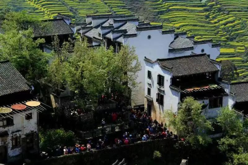 早餐后前往梯云村落、夢(mèng)幻田園--篁嶺人家,【80公里】一個(gè)懸掛在山坡上的古村落,群山環(huán)繞的數(shù)百棟徽派古民居在百米落差的坡面錯(cuò)落有序,與對(duì)面層層疊疊的千畝梯田花海遙相呼應(yīng),地?zé)o三尺平,自然條件的局限卻激發(fā)了先民的想象和創(chuàng)造力,從而在無意間造就了一處中國絕無僅有的“曬秋人家”風(fēng)情畫。篁嶺屬典型山居村落,民居圍繞水口呈扇形梯狀錯(cuò)落排布。篁嶺因”曬秋”聞名遐邇,村落“天街”似玉帶將經(jīng)典古建串接,徽式商鋪林立,前店后坊,一幅流動(dòng)的縮寫版“清明上河圖”。