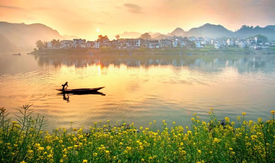 水色甄美,四季澄碧,沿江兩岸,青山蜿蜒,峰巒疊翠。船行在新安江上,兩岸樟桉疊翠,油菜花黃,粉墻黛瓦點(diǎn)綴其間,水墨徽州宛若天成!