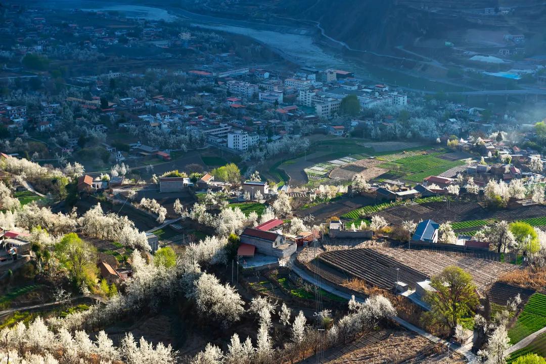 我們的團(tuán)期是金川最好的時(shí)節(jié),萬(wàn)物復(fù)蘇的初春三月,正值金川成千上萬(wàn)棵梨樹(shù)花期,雪白色的梨花競(jìng)相開(kāi)放,一片片、一層層的鋪散開(kāi)來(lái),漫山遍野的白色花海中夾雜零星新綠,空氣中氤氳著梨花清香,眼是天堂,身亦是天堂。