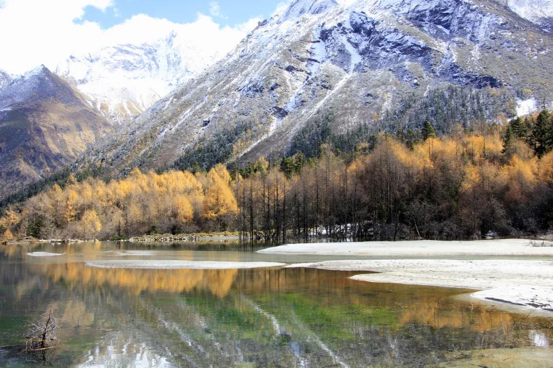 有“四姑娘山后花園”美譽(yù)的畢棚溝(不含景區(qū)觀光車60元/人-上行游客中心-龍王海/下行娜姆湖酒店-游客中心),溝內(nèi)有原始森林、絢麗多彩的植被、雪山溫泉,景觀豐富,一年四季各有各的美。初春時(shí)節(jié)斑駁著枯色的山林正漸漸蘇醒,枝丫生出新的綠色希望,然后就匯成一片嫩綠的海洋;溪流才開(kāi)始解凍,半冰半水潺潺流動(dòng),垂卷而下的百米瀑布如白砂裹雪,這是畢棚溝一年之中顏色最為清冽的時(shí)節(jié);沿原始森林中的蜒曲的山路前行,兩旁塞滿了楓樹(shù)、槭樹(shù)、鵝掌松、落葉松,遠(yuǎn)眺藍(lán)天高山,奇特的萬(wàn)年冰川,細(xì)細(xì)品味這個(gè)“小九寨”的雋氣與柔美。