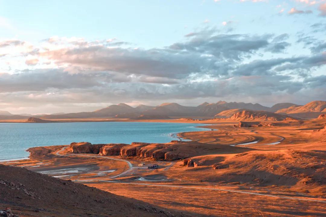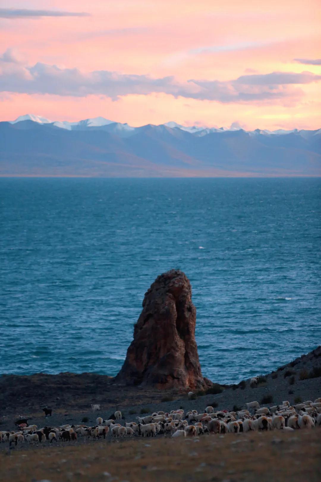 想看日出的朋友們今天就得起個(gè)早了哦~如果說納木措的日落是絢爛的,那它的日出就是寧靜而壯觀的。頭頂泛著魚肚白,然后當(dāng)水天相接的地方閃現(xiàn)出第一縷光,金光便開始爭(zhēng)相恐后地從深淵中躍出來,打破這太過沉默的晨,直到這輪旭日完全沖破云層,晨曦播撒在納木措的湖面上、山坡上、草地上,柔和的光暈照亮了整個(gè)大地。見證靜謐如何生出熱鬧,見證黑夜如何誕出光明,除了壯觀,別無他言。