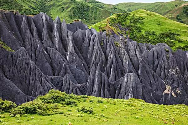 然后我們?nèi)サ桨嗣馈?strong>墨石公園】。八美地質(zhì)公園景區(qū)地處中國最美景觀大道318國道核心區(qū),是香格里拉之巔海螺溝通向香格里拉之魂稻城亞丁的中轉(zhuǎn)站,被稱為“中國地質(zhì)百慕大”,是我國唯一的高原石林景觀,同時(shí)也是318道上新晉的網(wǎng)紅打卡地,具有“春賞格桑夏避暑,秋觀彩林冬踏雪”的風(fēng)光;墨石公園有著許多千姿百態(tài)的奇幻墨石,忽而是高聳綠地又忽而裸露出冷峻的黑灰?guī)r面,參差起落極具外星球般的異域風(fēng)情。其中還有一條名為卡瑪?shù)暮哟┠珗@而過,傳說當(dāng)年格薩爾王王妃珠姆在此游玩兒時(shí)掉下一條絲巾,絲巾化為卡瑪河,滋潤著這片石林以及當(dāng)?shù)氐娜藗儭?