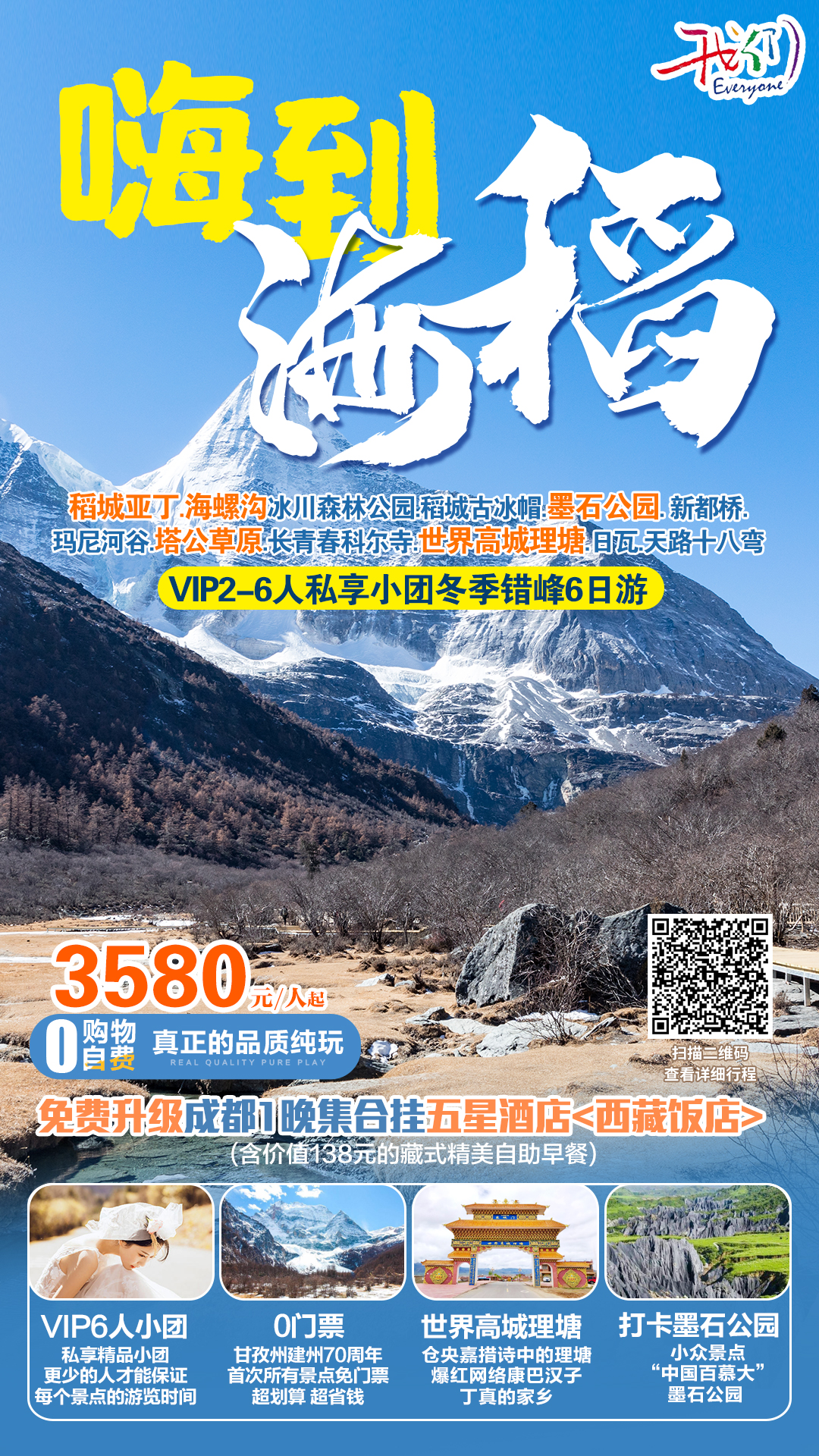 7晚8天!稻城亞丁、四姑娘山、甲居藏寨、墨石公園、海螺溝、丁真家鄉(xiāng)理塘、圣地旅拍、夜拍星空、二進亞丁、五大圣地