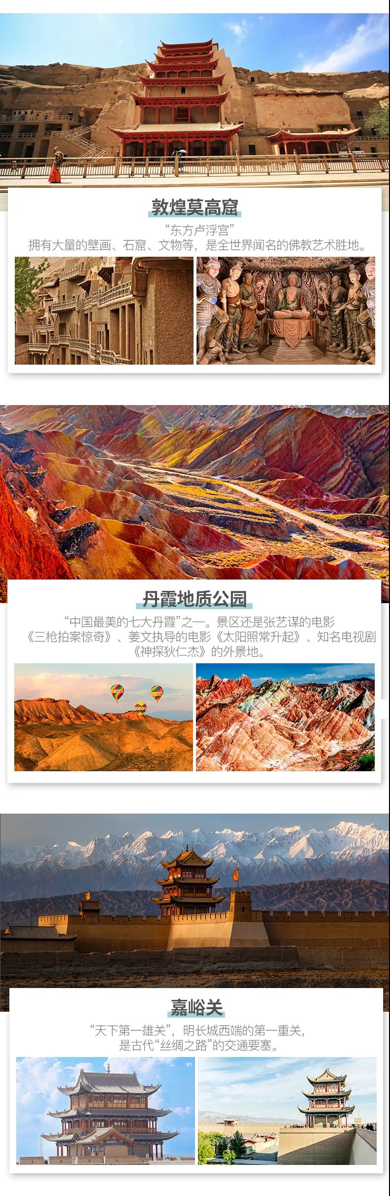 1. 敦煌莫高窟景區(qū)自2015年6月起實行數(shù)字展示中心數(shù)字洞窟展示和莫高窟實體洞窟體驗的預(yù)約參觀模式,每天限6000人參觀,團隊參觀時間嚴格按照莫高窟預(yù)約場次進行,因此,敦煌段景點參觀順序會根據(jù)莫高窟時間進行調(diào)整或同團客人安排不同時間游覽,敬請配合。