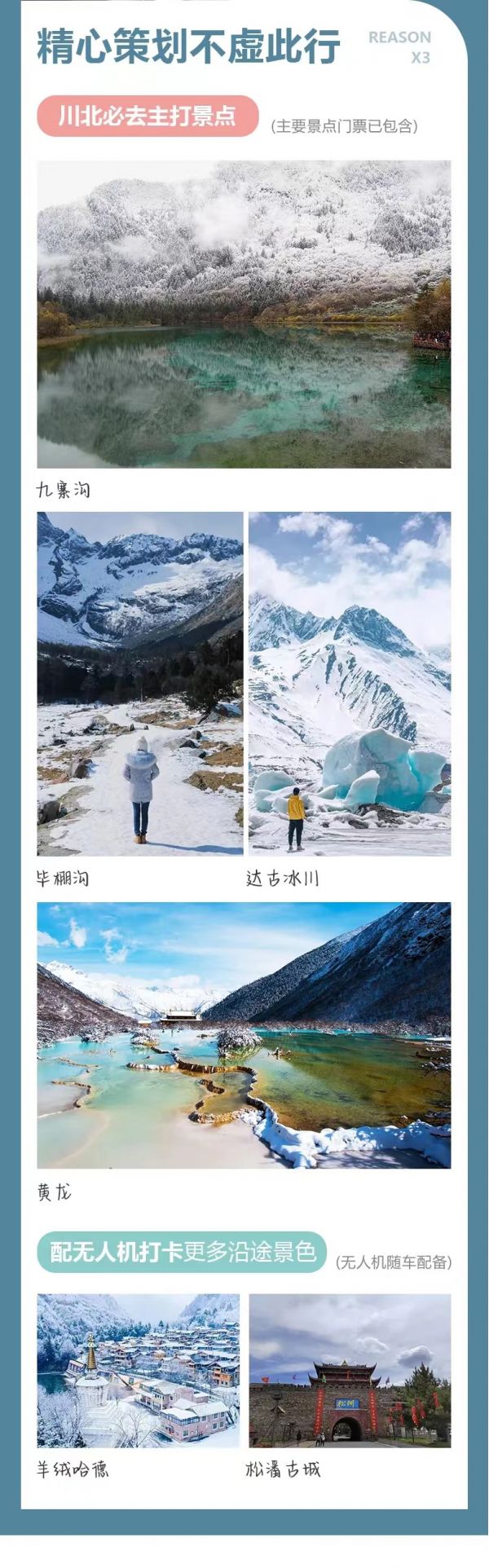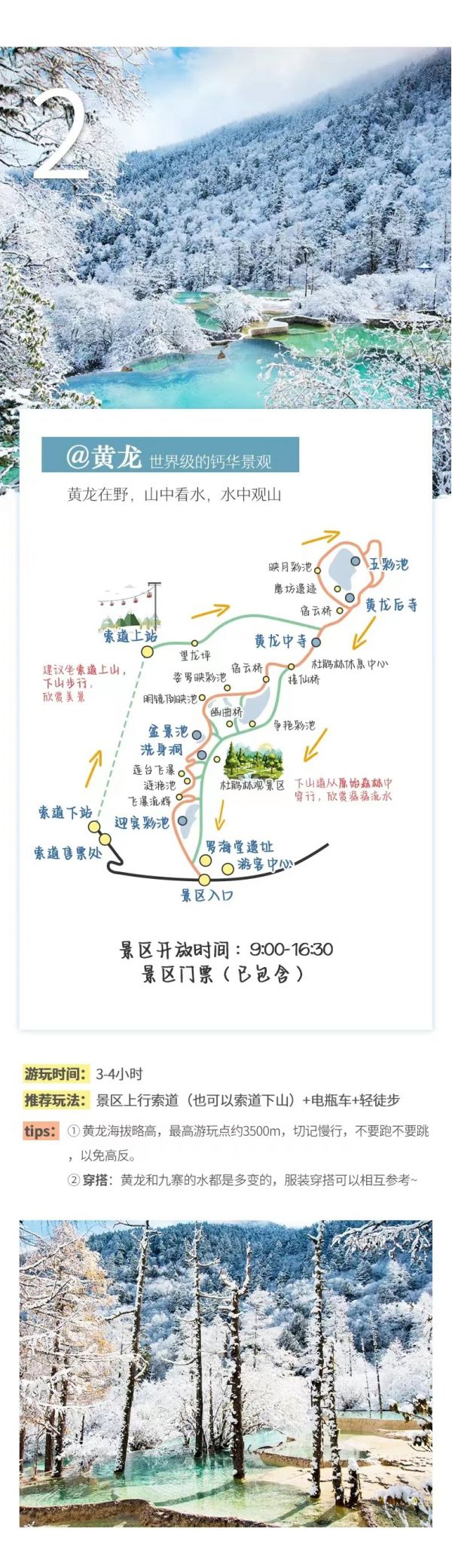(4)冬季黃龍景區(qū)索道停運,游覽景區(qū)以徒步游覽為主,游客朋友根據(jù)自身體力進行選擇游玩量力而行。
