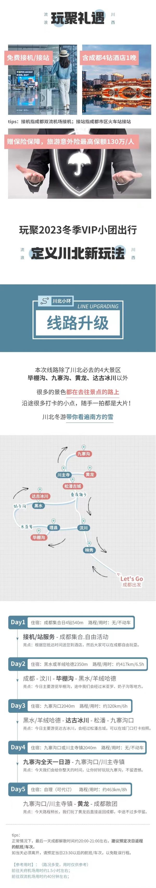 D5九寨溝口/川主寺鎮(zhèn) - 黃龍風(fēng)景區(qū) - 成都散團行駛里程:463km 行車時間:約8小時