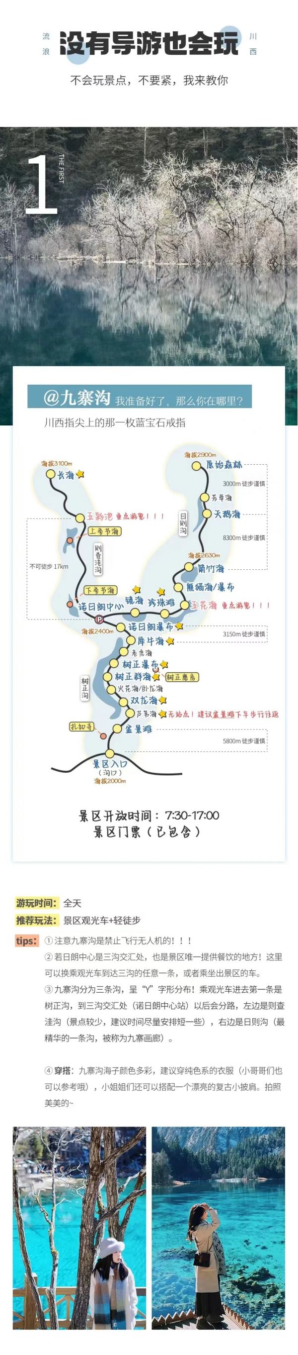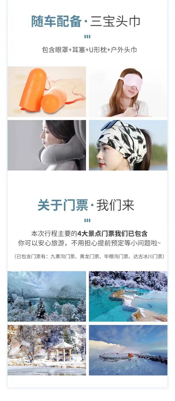 4、九寨溝景區(qū)實行分區(qū)域開放,開放區(qū)域為溝口經(jīng)諾日朗瀑布至長海,扎如溝的扎如寺及日則溝的鏡海;其中,長海、五彩池、鏡海、諾日朗瀑布、樹正群海、雙龍海瀑布、扎如寺等景觀原則上為步行游覽區(qū),具體游覽方式請聽從隨車講解員安排。