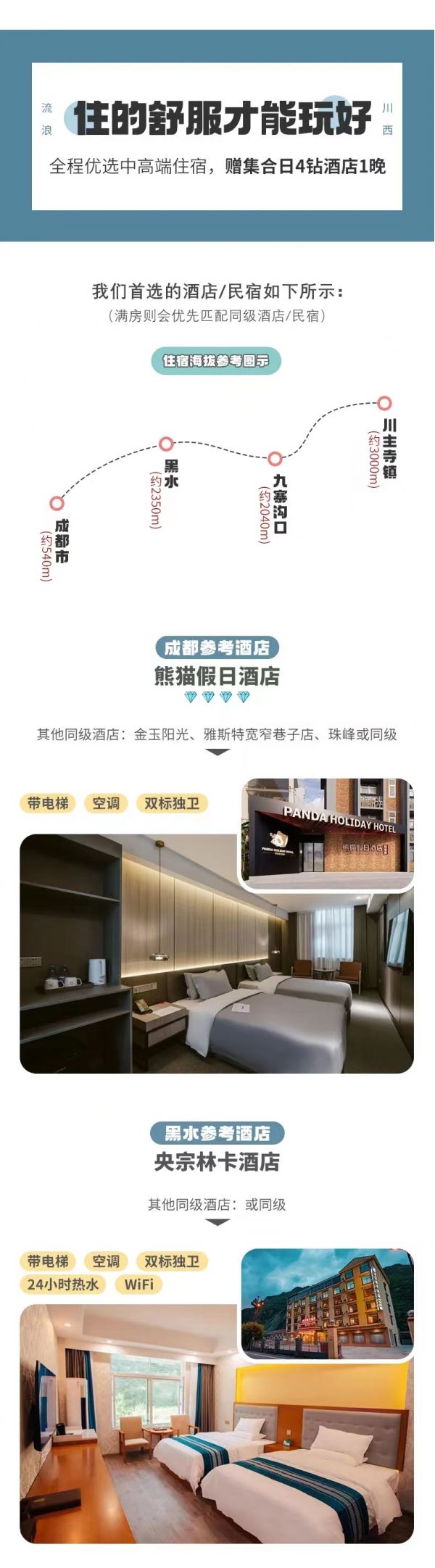 (3)由于黑水縣部分特殊情況不定時的交通管制或者修路,會對出行和游玩景區(qū)時間做一些調(diào)整,望知悉!