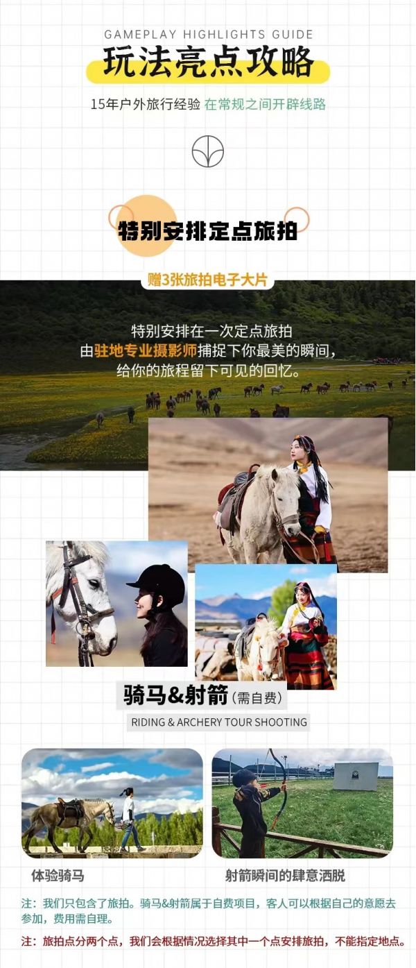 (2) 洛絨牛場(chǎng)往返騎馬費(fèi)用500元/人,價(jià)格隨季節(jié)浮動(dòng),以景區(qū)定價(jià)為準(zhǔn)(可選擇);
