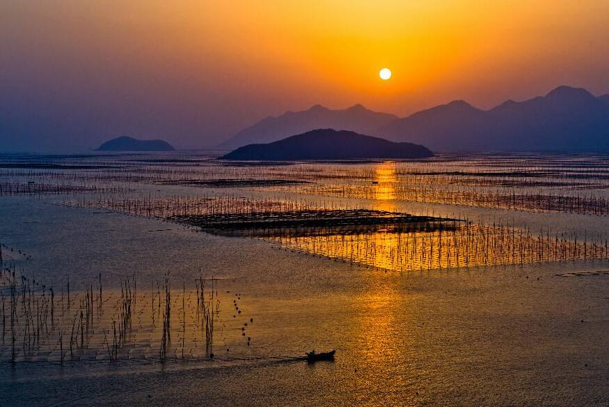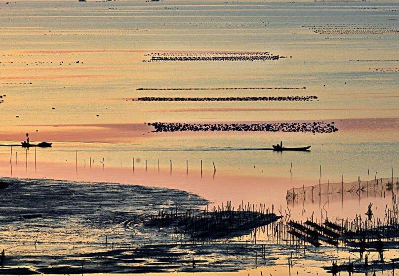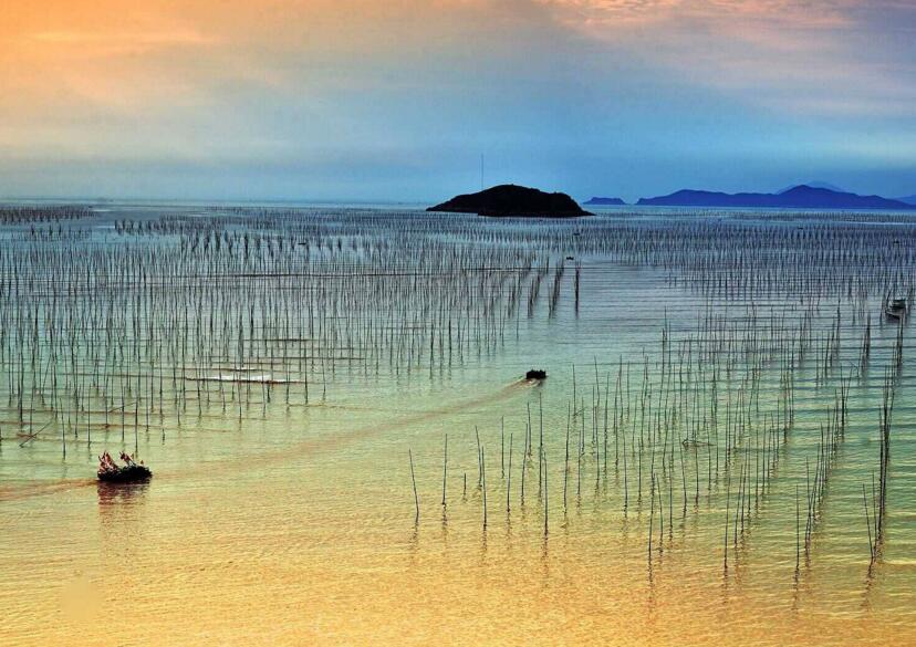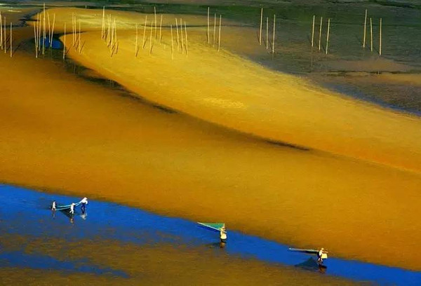 這里四季的潮汐變化、天光云影、原生態(tài)的海事活動,讓美麗神奇的海域瞬間迥異奇妙無比。那詭譎神秘的滿海竿影,那夢幻般的海上家園,那鷗鳥掠過浪尖撲騰灘涂,那金色沙灘褐色礁叢,那港灣遠空的一抹紅云束光,海上日出日落……都是那樣靈動令奇絕。