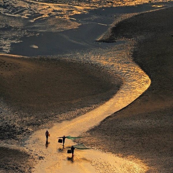 第一,有人有景,營造情景交融的場景。霞浦灘涂常年都有人在勞作,點綴在灘涂上的人遠處看去雖然是星星點點的,但是往往是畫龍點睛之筆。