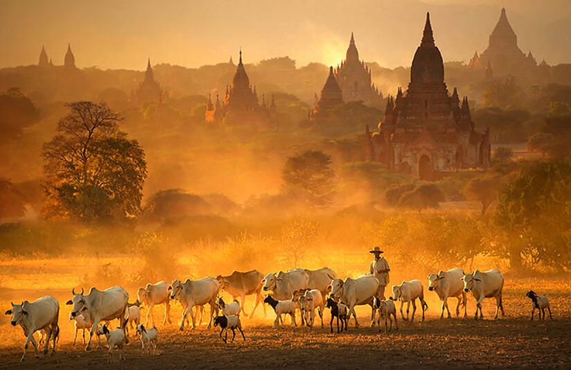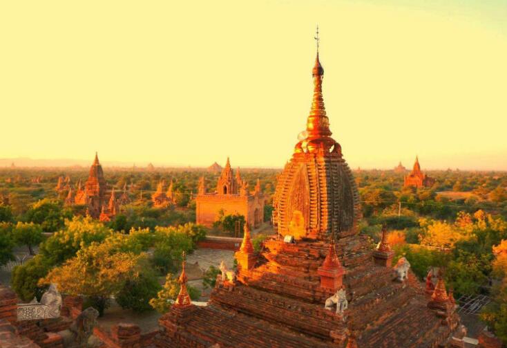 飯店內(nèi)早餐后,前往國內(nèi)機場,乘機飛蒲甘,大約1小時航程。古都蒲甘位于伊洛瓦底江畔,蒲甘佛塔群始建于十至十三世紀之間,非常具有藝術(shù)及考古價值。首先我們參觀蒲甘地區(qū)最古老的佛塔—【瑞喜貢塔】,之后參觀蒲甘最美的佛塔—【阿南達塔】,此塔在蒲甘眾多佛塔當中色彩最豐富,建筑形制也最富于變化,塔內(nèi)四周供奉著四尊莊嚴祥和的佛主神像;接著參觀蒲甘最高的佛塔—【大冰瑜塔】,此塔有神廟之譽。下午參觀參觀蒲甘著名的手工藝品—【漆器】的制作,及精美的【柚木】雕刻品。傍晚登上靠近伊洛瓦底江邊的【日落塔】,欣賞色彩艷麗豐富的【蒲甘日落】美景。