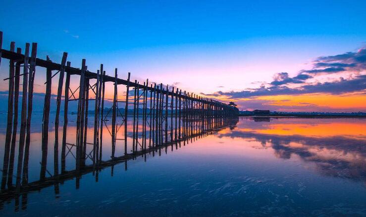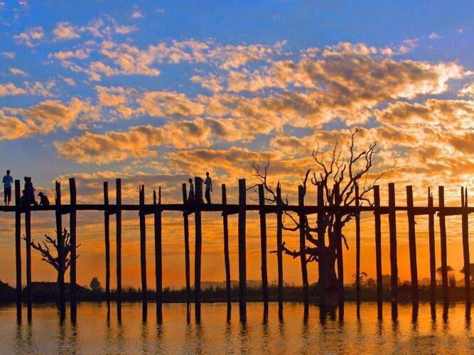 飯店內(nèi)早餐后,乘車前往曼德勒市西南郊的【烏本橋】,此橋全長2千余米,全部由柚木建成,又稱“情人橋”,至今已有2百多年的歷史;橋上當?shù)匦腥撕图t衣僧侶悠閑往來,小販攤商兜售特產(chǎn),奶茶館掩映在古樹如傘的巨大樹冠之下,平和中又充滿生活的情趣。參觀在其面前前往橫跨大河的“情人橋”,全橋總長1200公尺,全部由柚木建成,又稱柚木橋。參觀緬甸特產(chǎn)【翡翠玉】。乘機前往黑河。抵達后,乘車前往艷麗湖。抵達湖邊的娘惹鎮(zhèn)后,換乘當?shù)靥厣男〈?,前往建于水邊的木屋酒店。入住后,用晚餐,并欣賞當?shù)亍?strong>民族歌舞表演】。