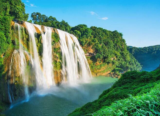 前往亞洲最大瀑布——【黃果樹瀑布】(電瓶車50元/人已含,不含黃果樹扶梯單程30元/人,往返50元/人)抵達(dá)黃果樹瀑布景區(qū)門口用午餐后進(jìn)入景區(qū)游覽巨大瀑崖上轟然墜入十七米深的犀牛灘中,聲如巨雷,山鳴谷應(yīng),氣度恢弘,氣象萬千,攝人心魄。作為世界上唯一可以從上、下、前、后、左、右六個(gè)方位觀賞的瀑布,最特別的角度就是瀑布后邊的那個(gè)水簾洞,洞窗外有塊平臺(tái),您可以站在此處與瀑布來個(gè)近距離接觸。如果幸運(yùn)的話在這里還可以看到彩虹交織的瀑布。這里是85版《西游記》的主要取景地,除了水簾洞外,片尾曲一開始師徒四人走過的陡坡塘瀑布、位于天星橋景區(qū)的高老莊都能讓您在腦海瞬間再現(xiàn)電視場(chǎng)景。游玩結(jié)束前往晴隆入住酒店休息!