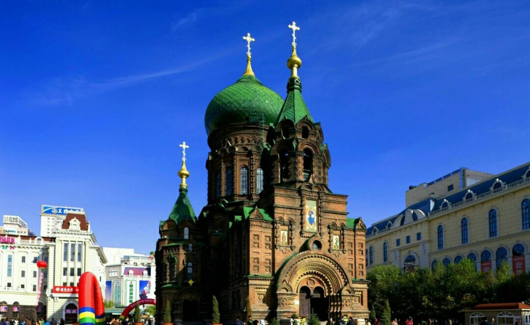 早抵達孫家,早餐后游覽沿江帶狀開放式公園【斯大林公園】(游覽不少于30分鐘),漫步松花江畔,觀看哈爾濱標志性建筑【防洪紀念塔】(游覽不少于20分鐘),參觀遠東最大的東正教堂【圣索菲亞大教堂外景及廣場】(游覽不少于20分鐘),乘車赴馳名中外的【太陽島公園】(游覽不少于2小時,景區(qū)內(nèi)電瓶車自理20元/人):太陽石、太陽山、太陽湖、水閣云天等;可自費參觀世界上最大的室內(nèi)冰燈展(自理160元/人,游覽不少于45分鐘)。后參觀俄羅斯民貿(mào)店(約40分鐘)。中午孫家乘專列赴漠河。
